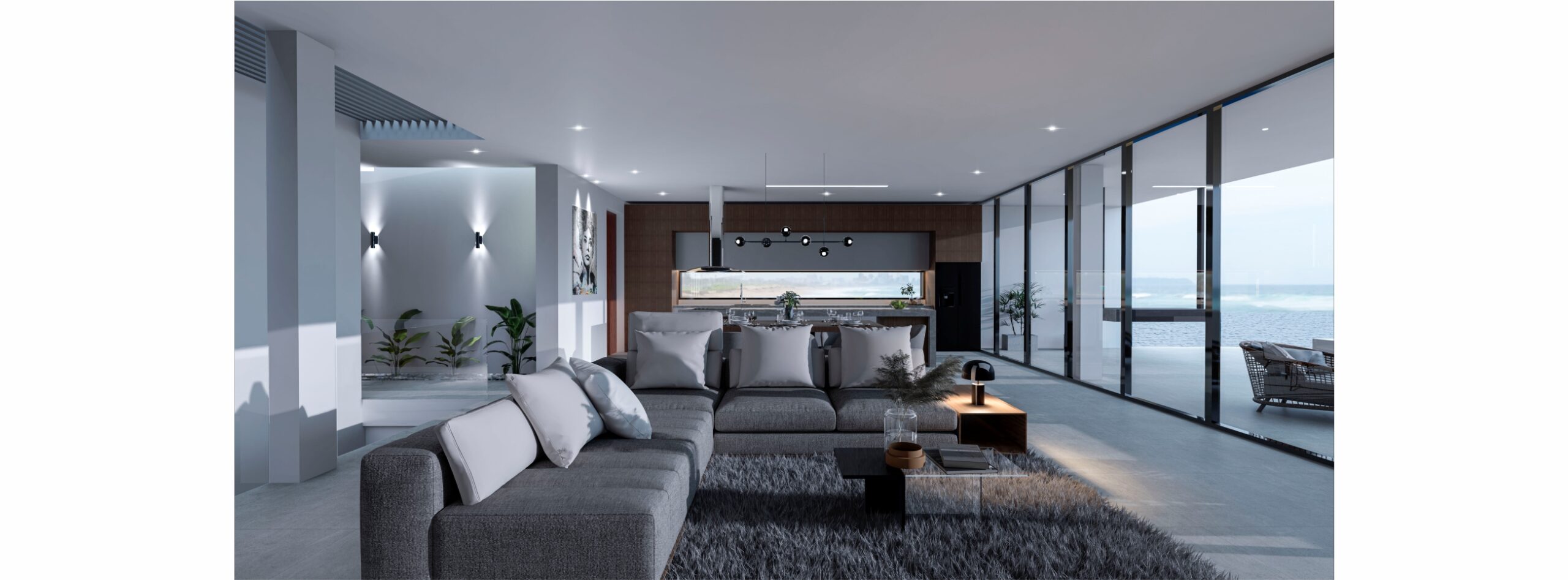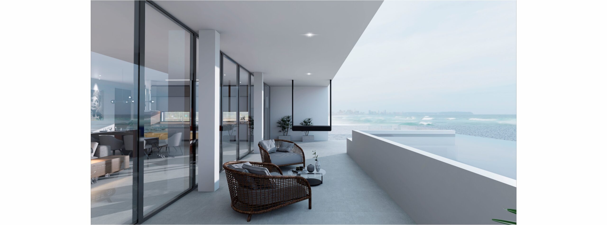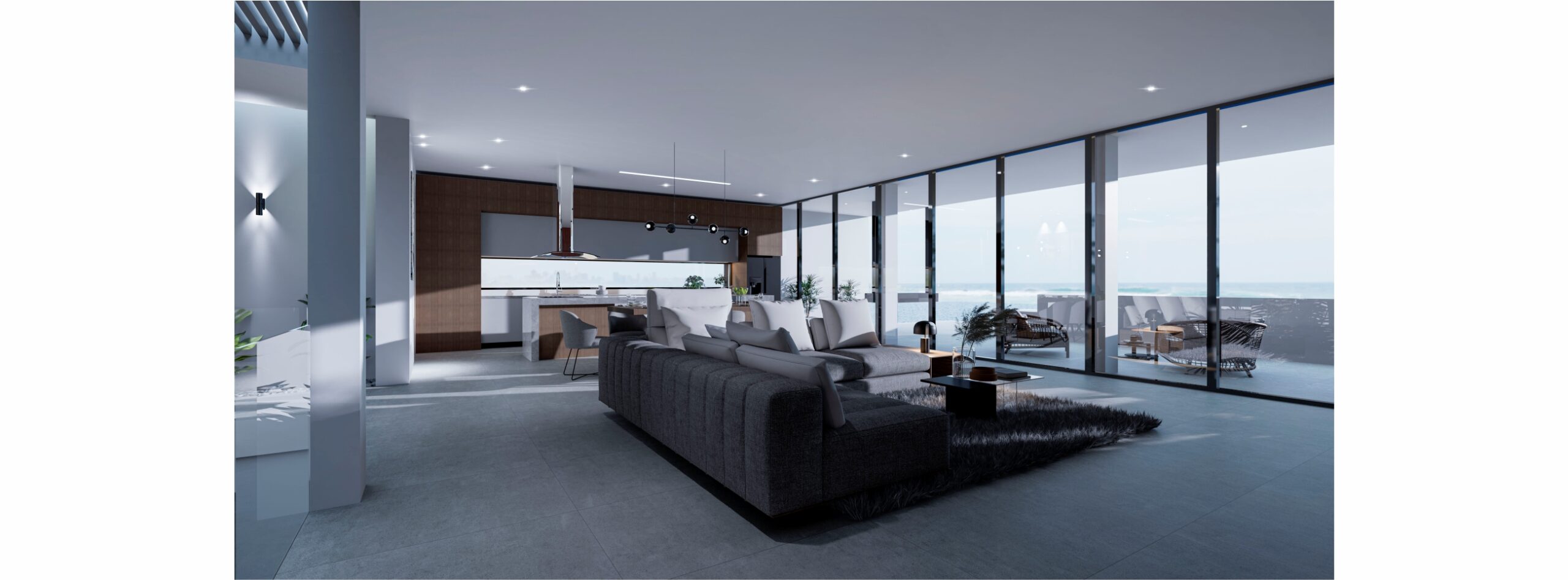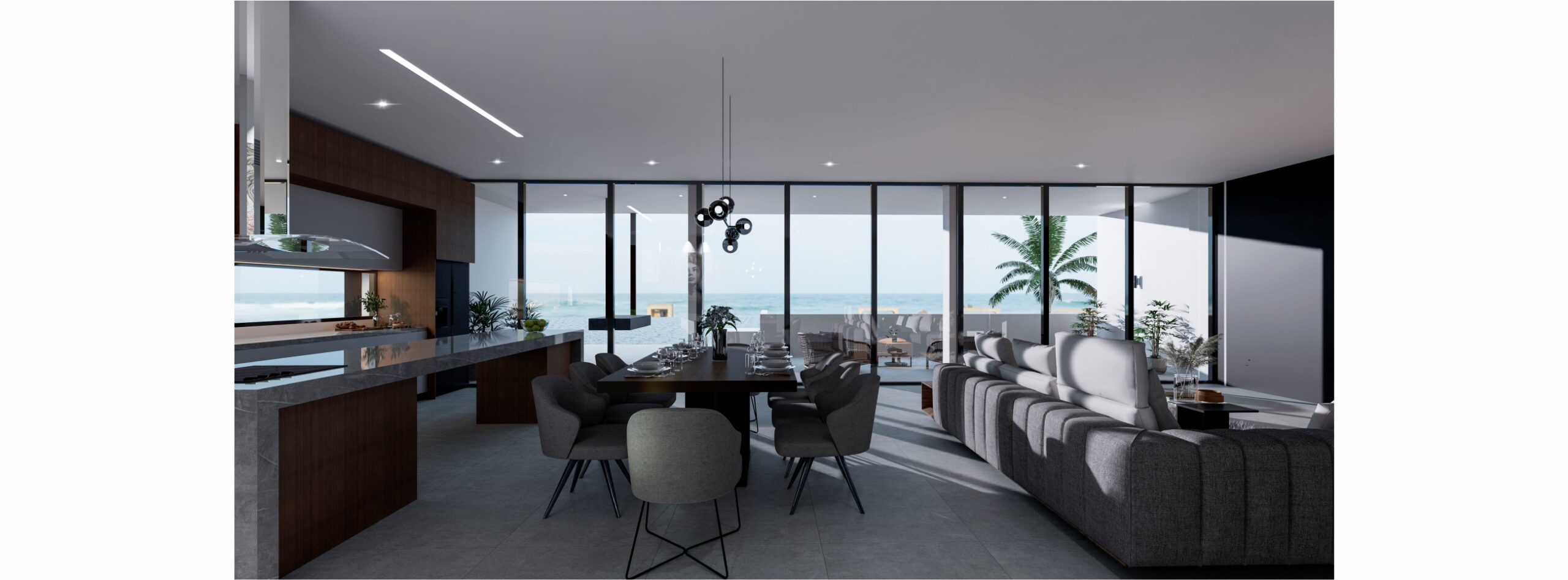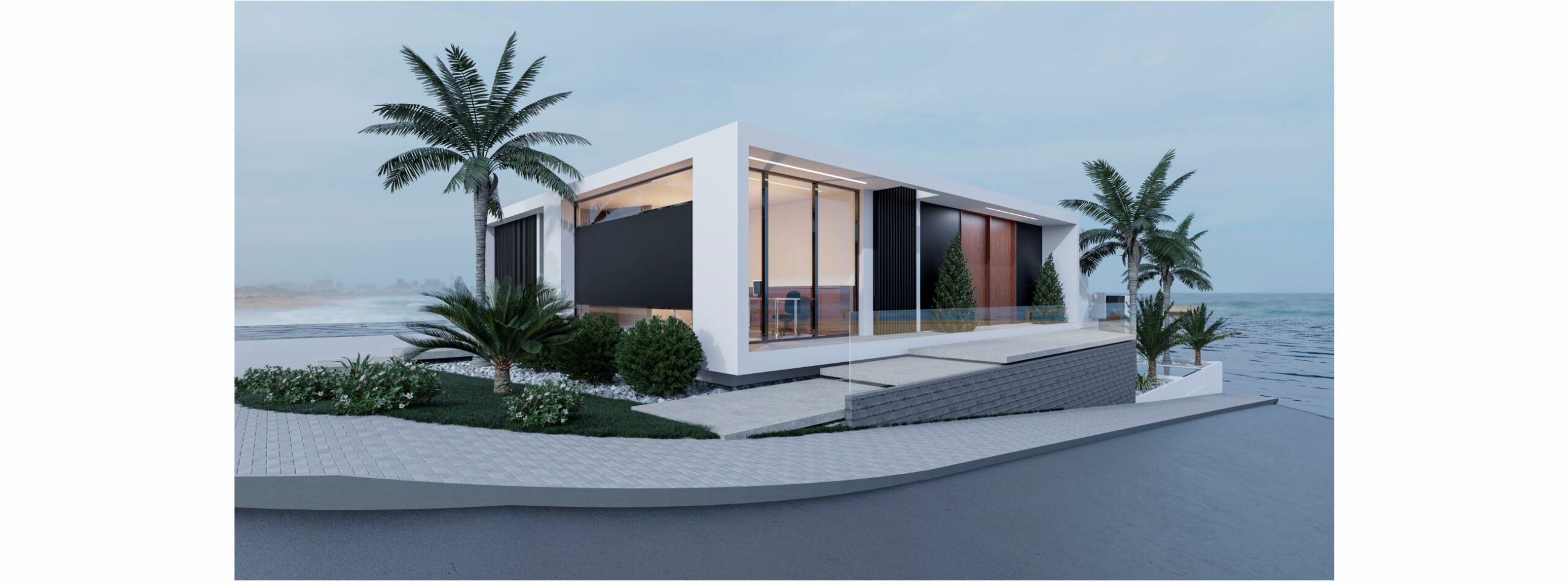 El área social de este proyecto respeta la pendiente negativa del terreno enmarcando las visuales hacia el mar aprovechando los atardeceres.