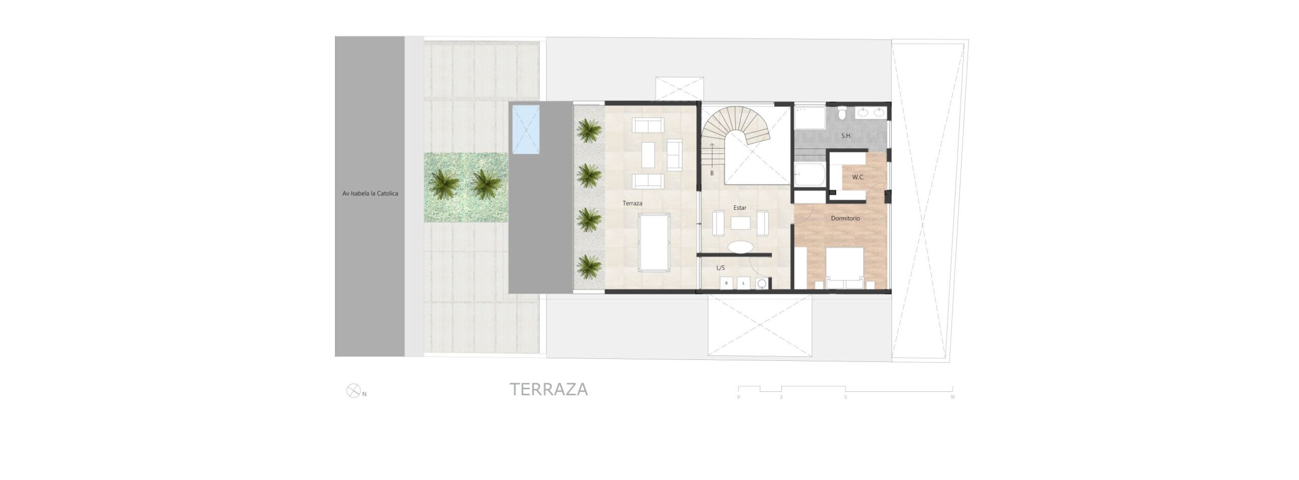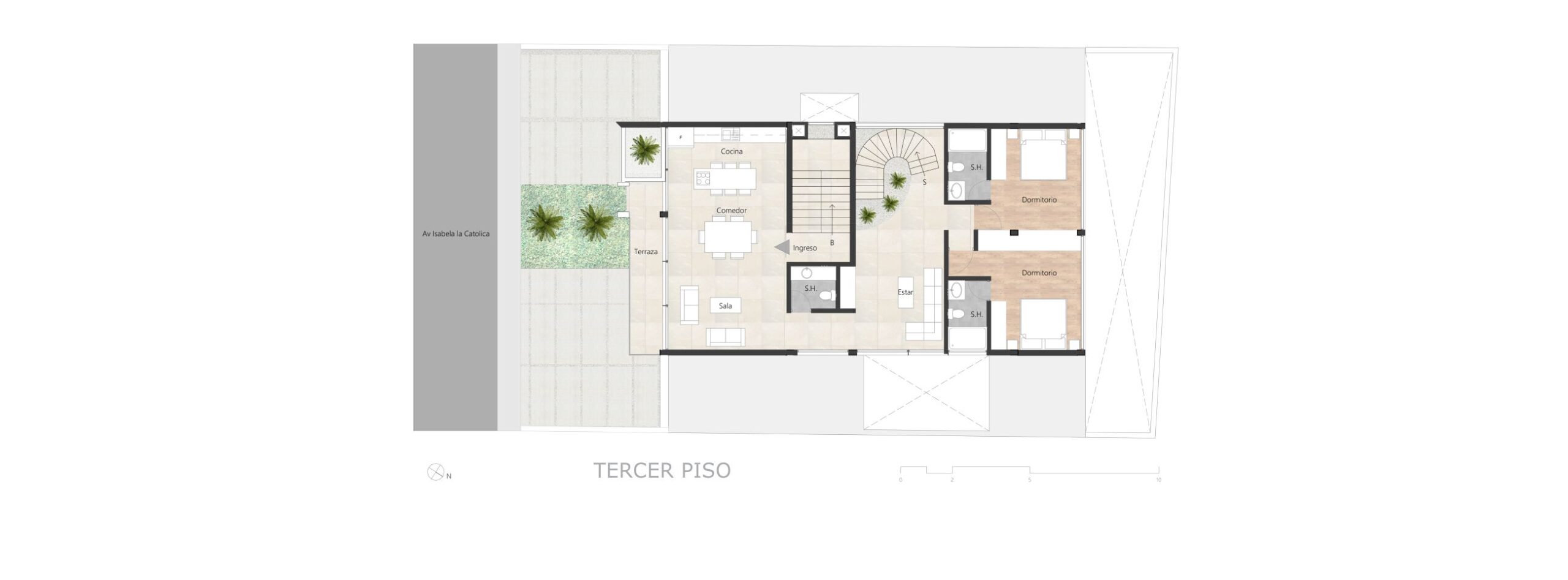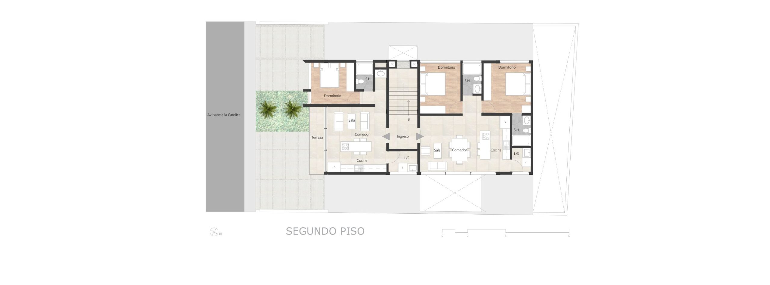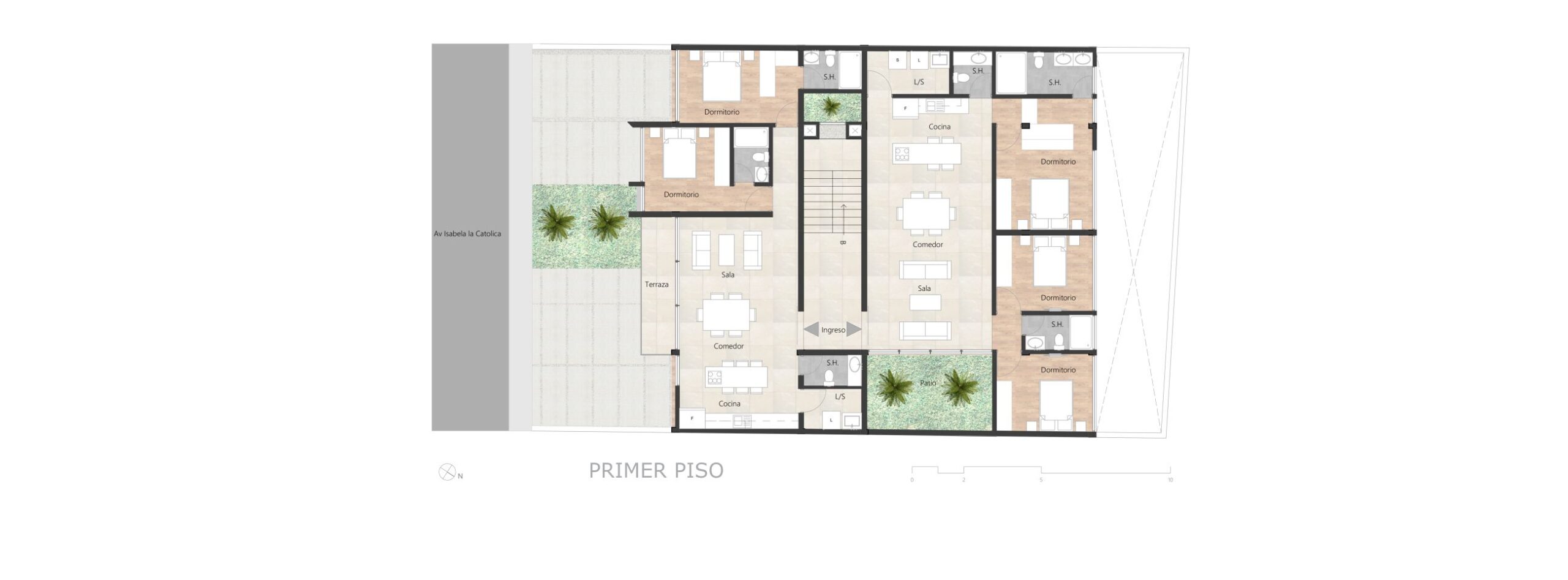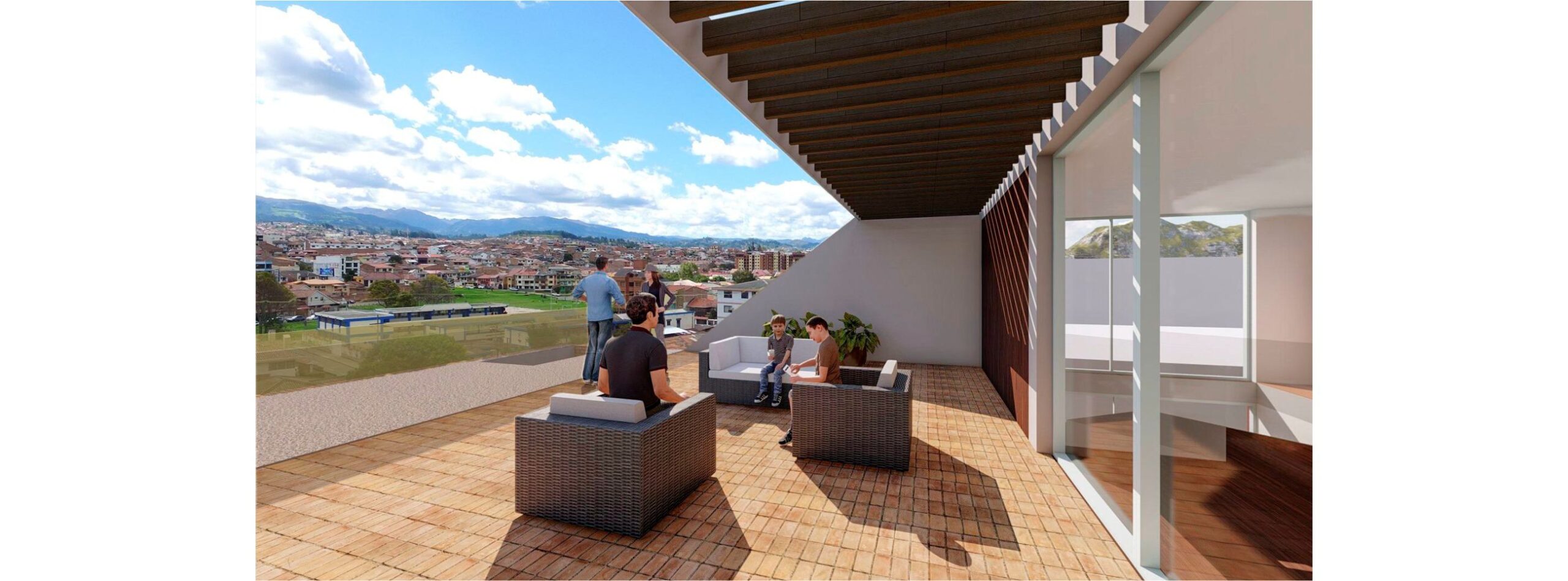 Un edificio donde se aprovecha al máximo su altura ocupacional con mayor número de departamentos cómodos, contemplan el paisaje de la ciudad con sus terrazas al aire libre.