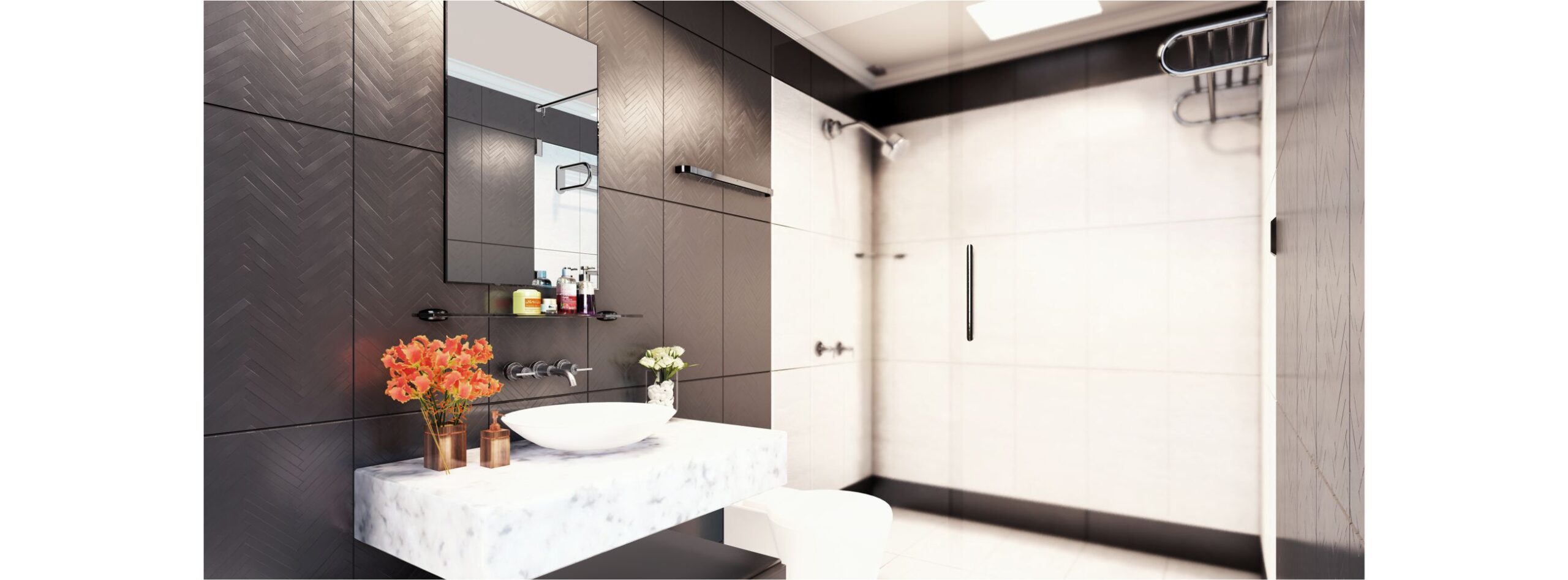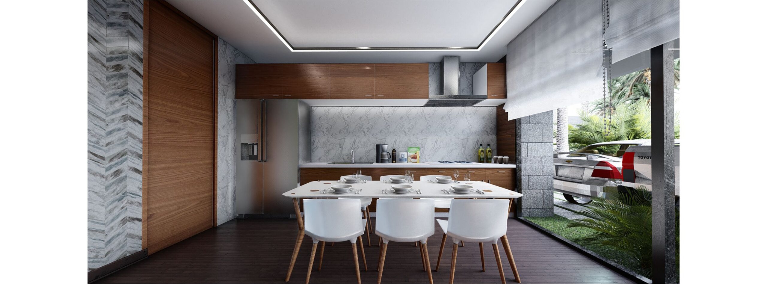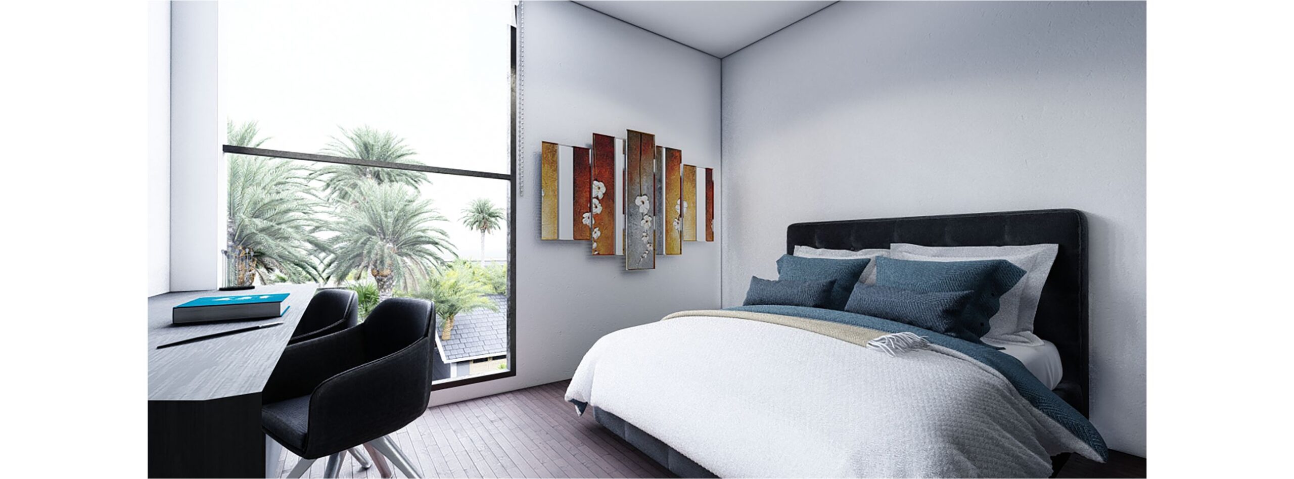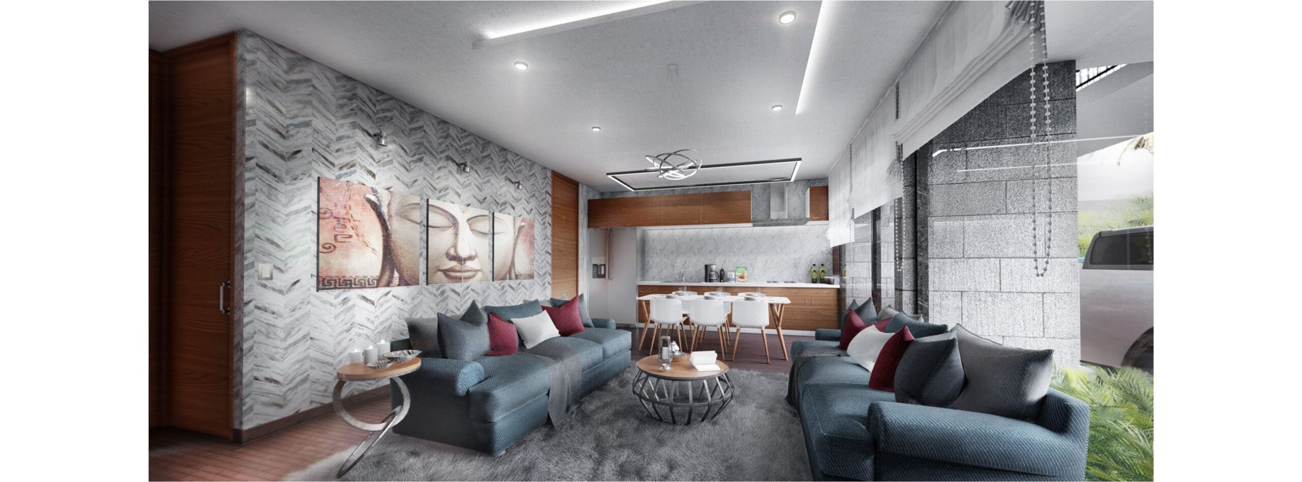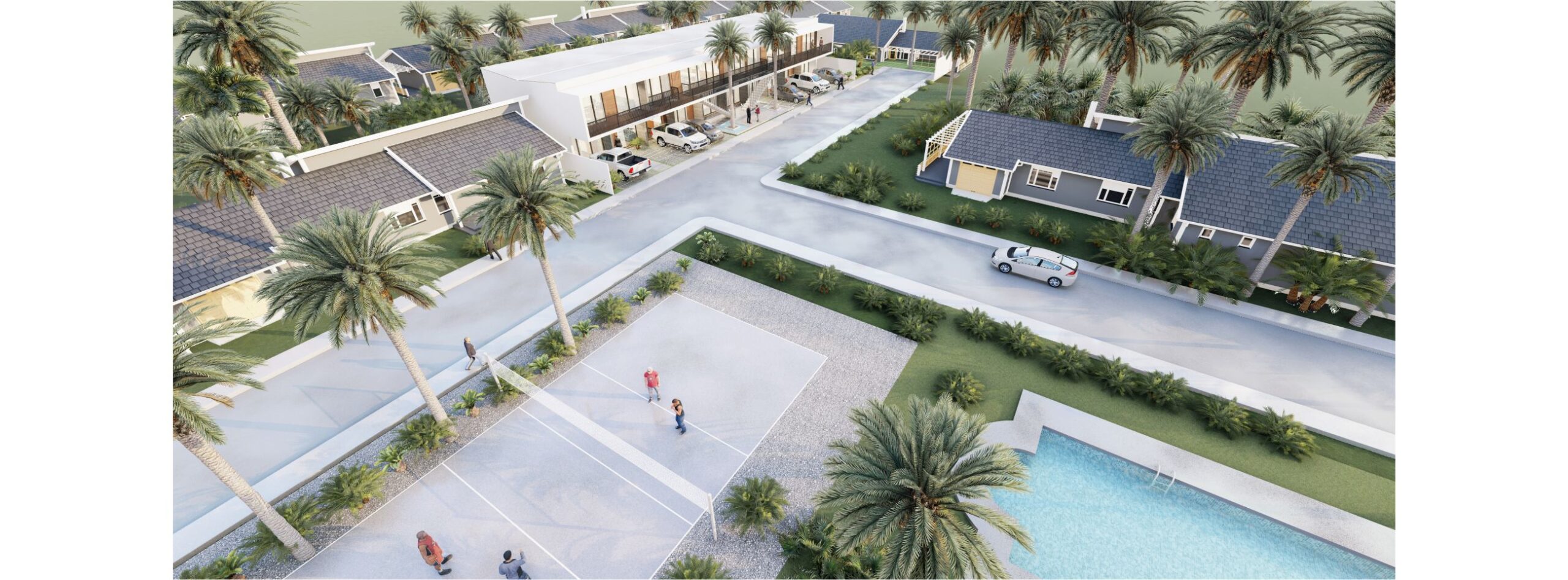 Ocho departamentos unidos por un acceso generoso junto a unos espejos de agua y vegetación brindan espacios de calidad.