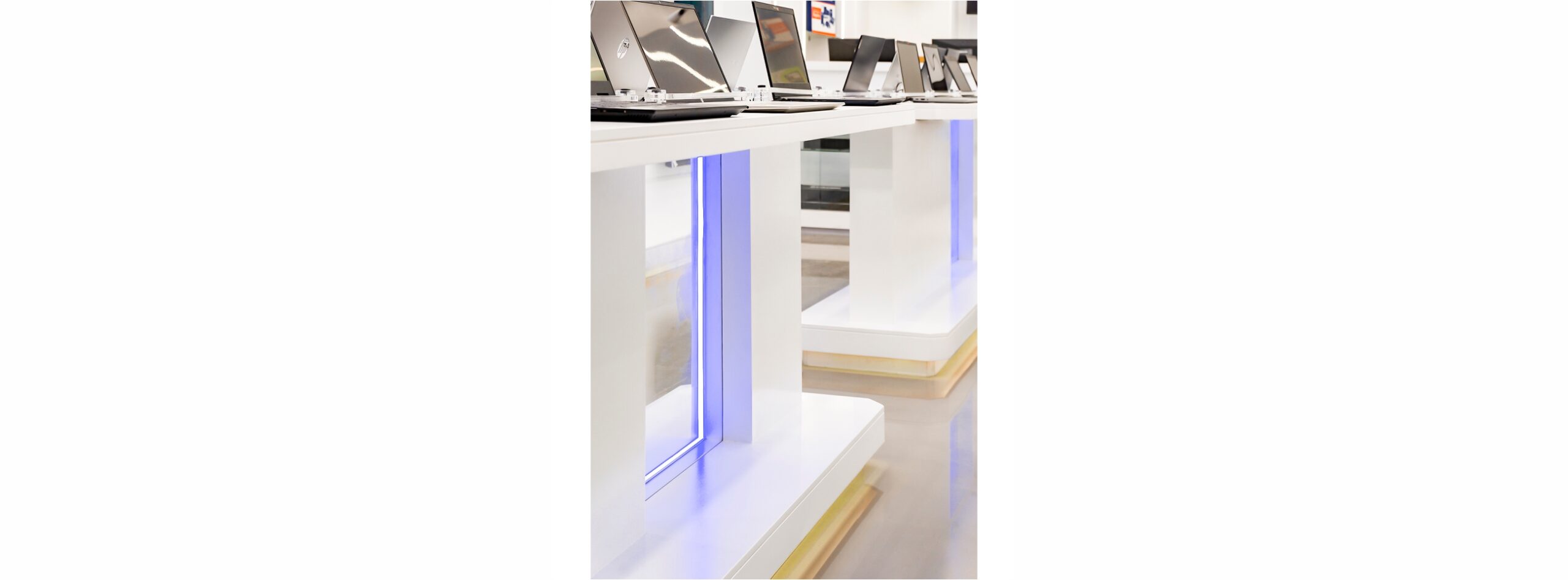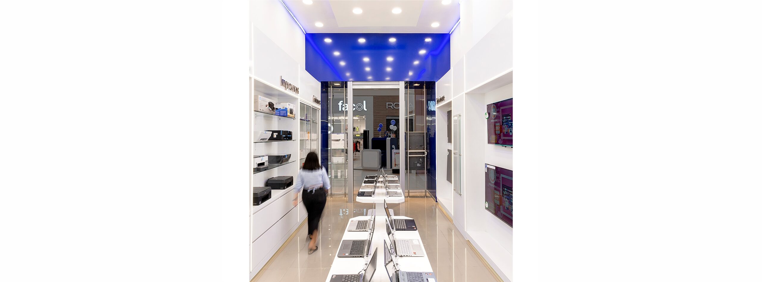 Un local de tecnología con diseño vanguardista nos permite exhibir sus productos de una manera elegante.