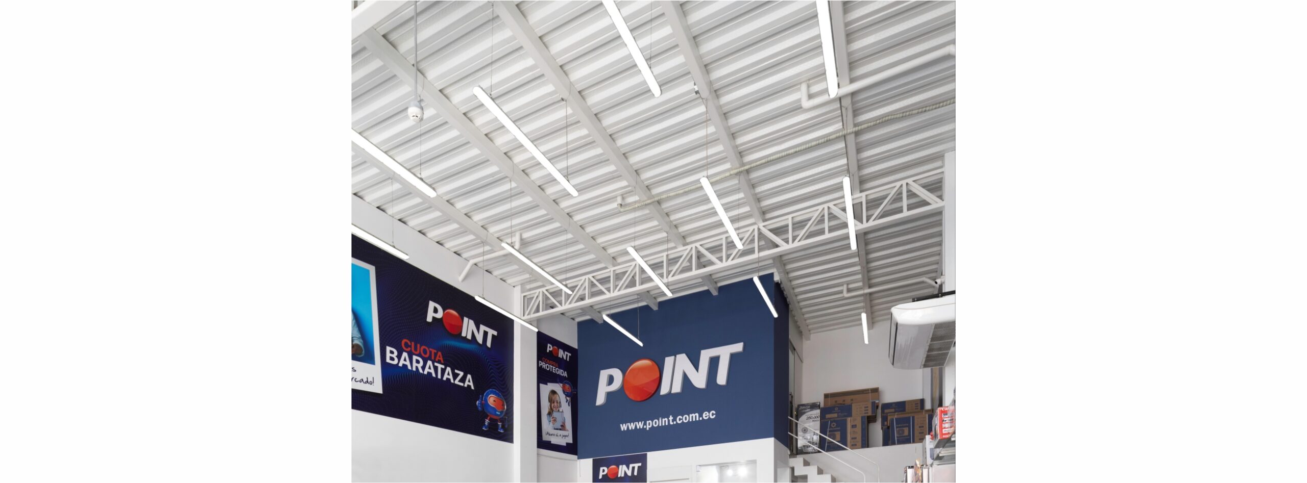 Con un planteamiento estructural adecuado nos permitió resolver la exhibición de productos tecnológicos y línea blanca sin columnas al centro del local mejoramos la experiencia del usuario.