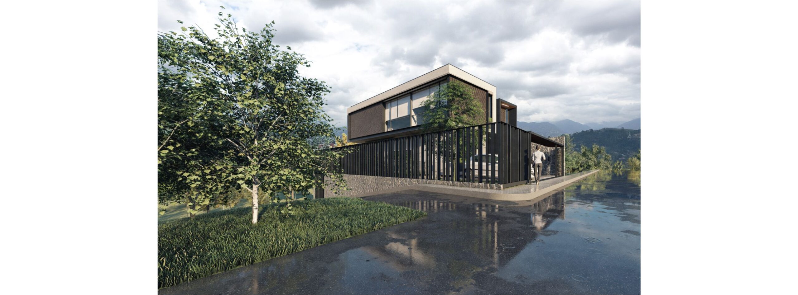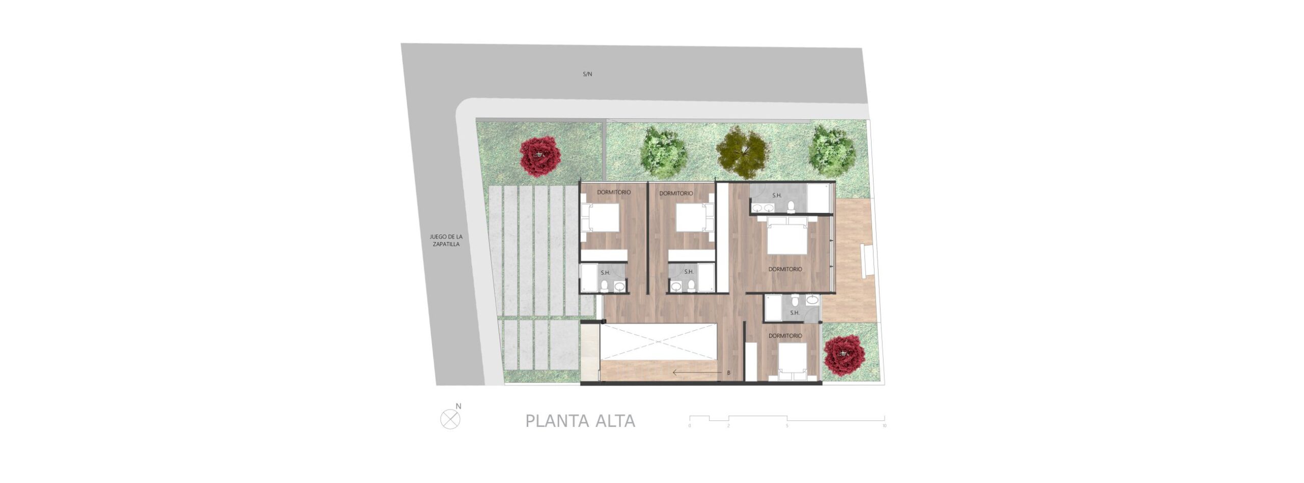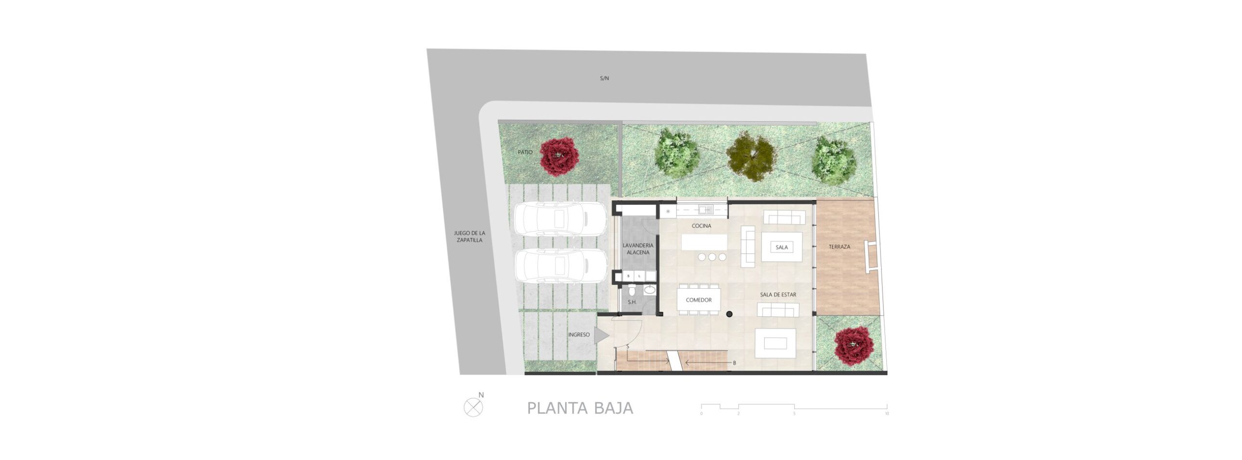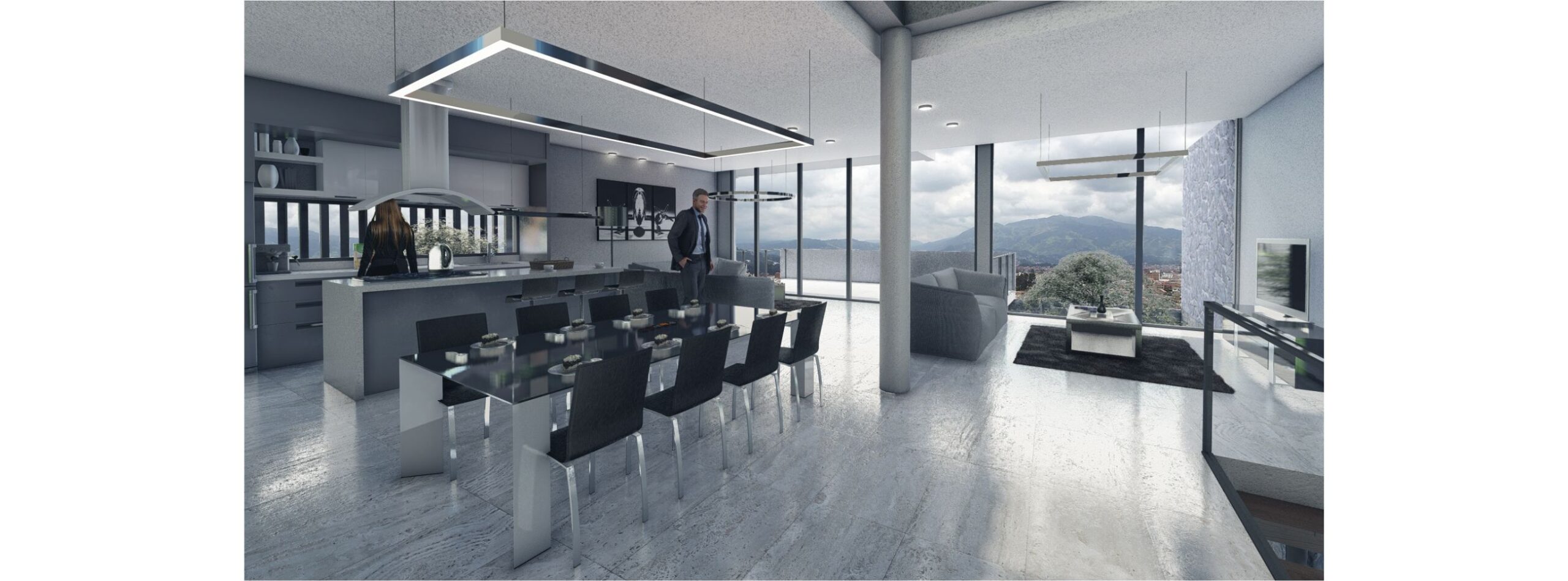 Una vivienda que aprovecha su retiro posterior con una terraza, para disfrutar de sus áreassociales contemplando la ciudad.