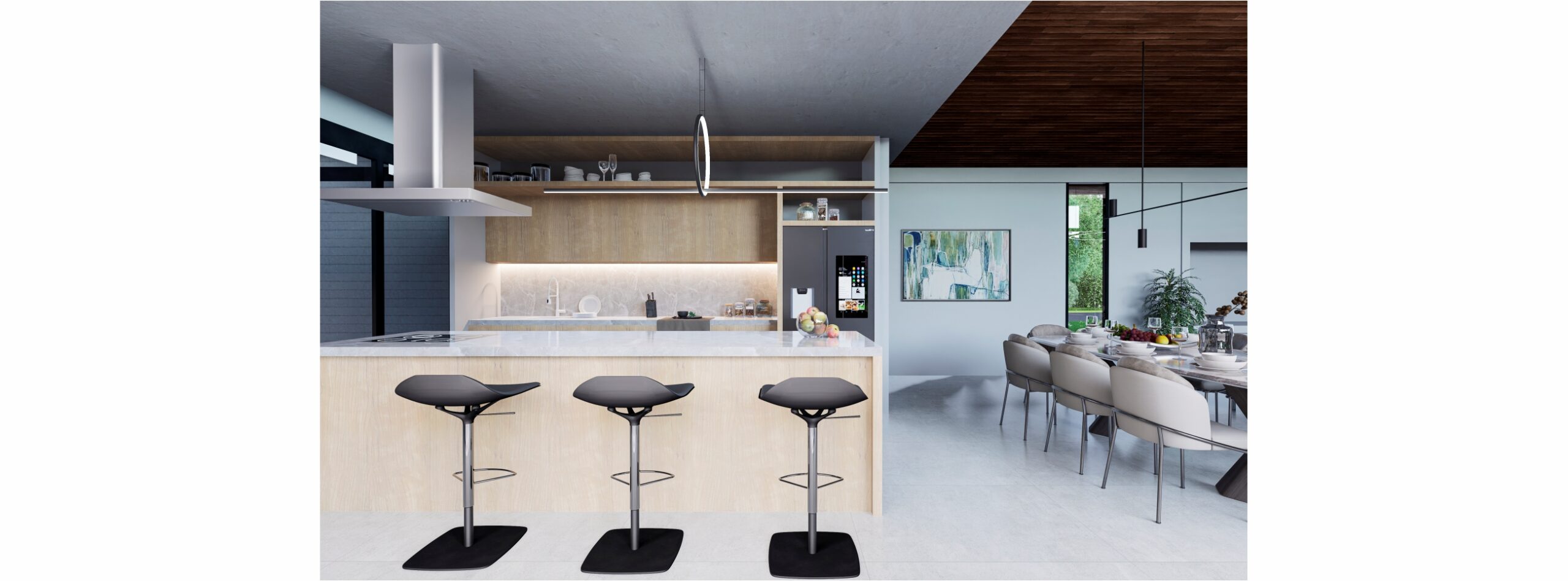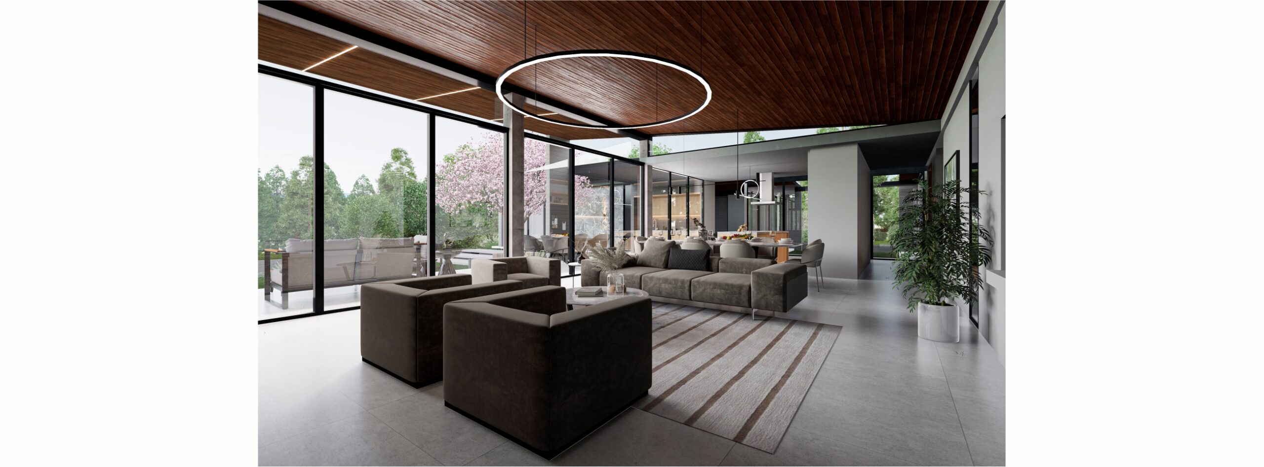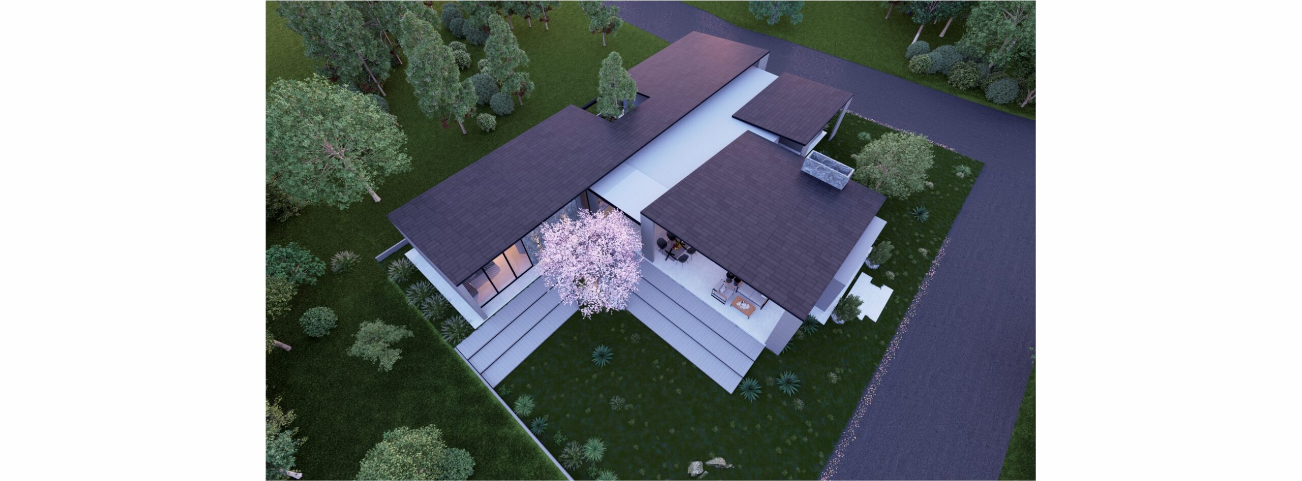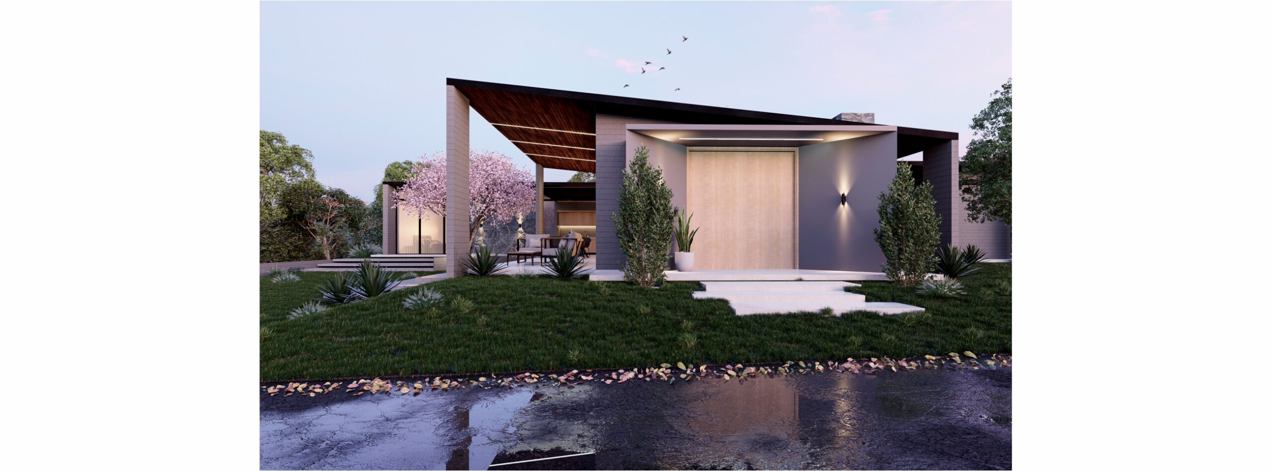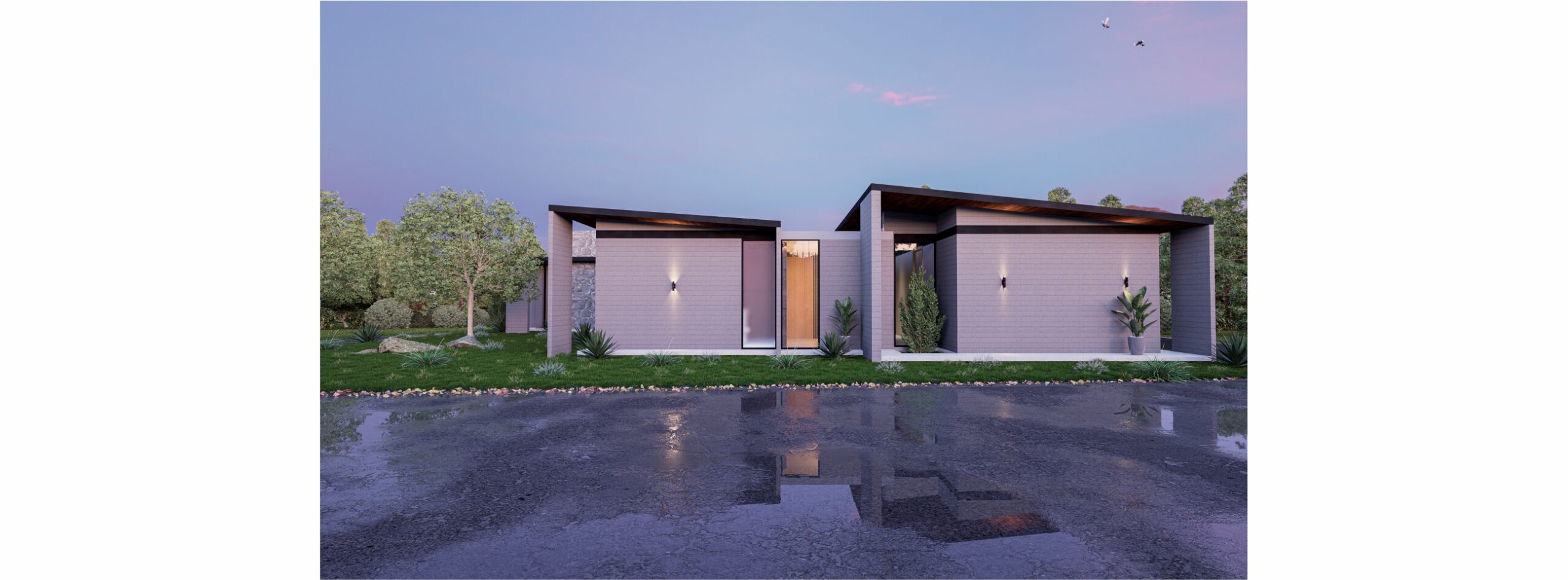 La fachada completamente cerrada nos permitirá pasar a su interior y apreciar sus grandes ventanales con conexión hacia área verde.